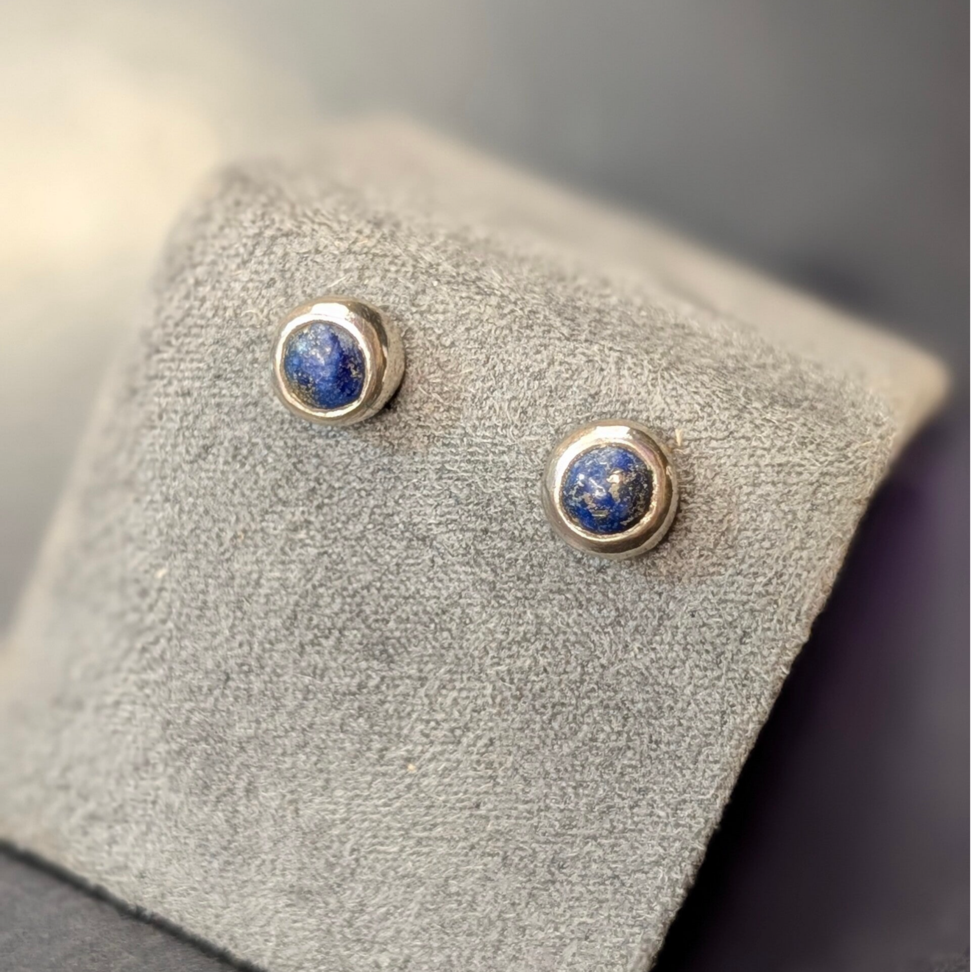 Blue Lapis Lazuli studs. set in recycled sterling silver
