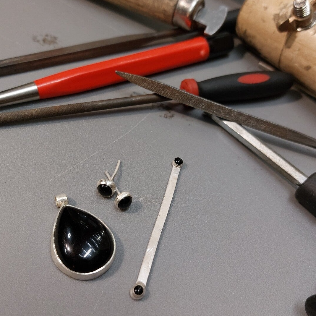 Large teardrop Onyx pendant. Set in recycled sterling silver.